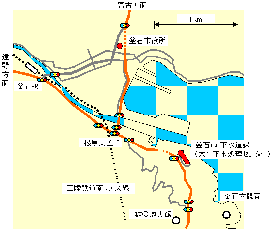 JR/三陸鉄道釜石駅からバス又はタクシー利用約2.5km