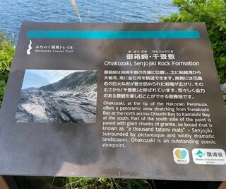 箱崎白浜から現地までの6.8kmは、要所に案内板、御箱崎に東屋とトイレが整備されたウォーキングコースになっています。