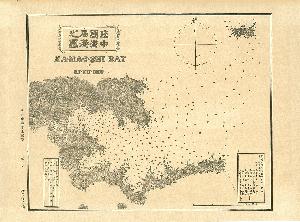 釜石港を対象に作成された「陸中國釜石港之図」は、明治5年(1872)に発行された日本人のみの手による海図第1号です。この図は、縮尺三万六千分の一で、水深の単位に尋(ヒロ・約1.8m)を用い、当時の英国海図の図式によって険礁・海岸線・ケバ式の山容などを描いています。