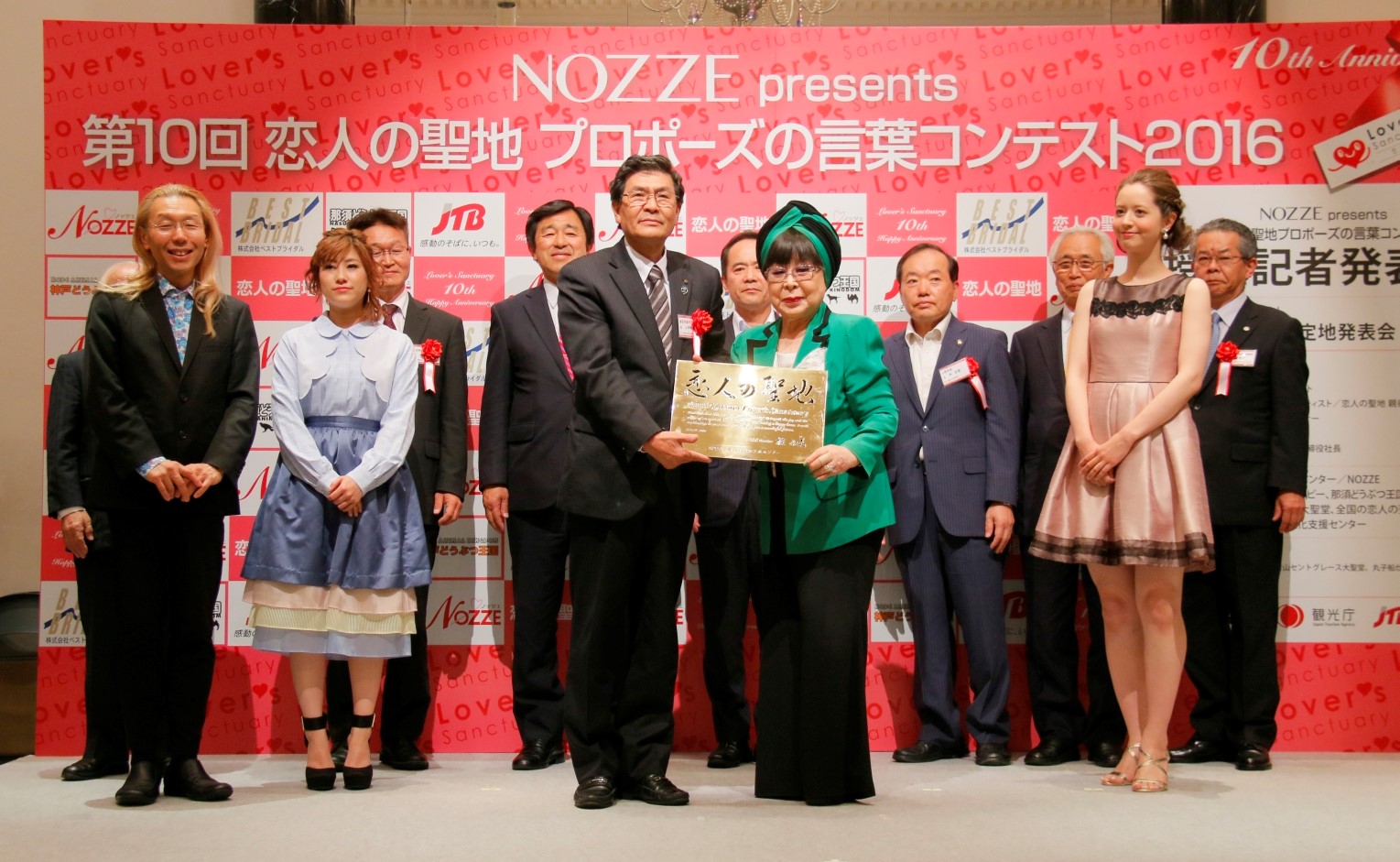 平成28年5月19日には、東京都内で恋人の聖地選定委員のファッションデザイナーの桂由美さんや、華道家の假屋崎省吾さんらの出席の下、銘板授与式が開催されました。