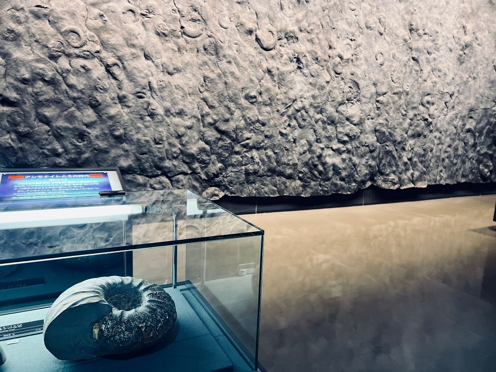 当市と姉妹都市のフランスのディーニュ・レ・バン市で発掘された1億9500万年前のアンモナイト化石群の巨大レプリカが展示されています。