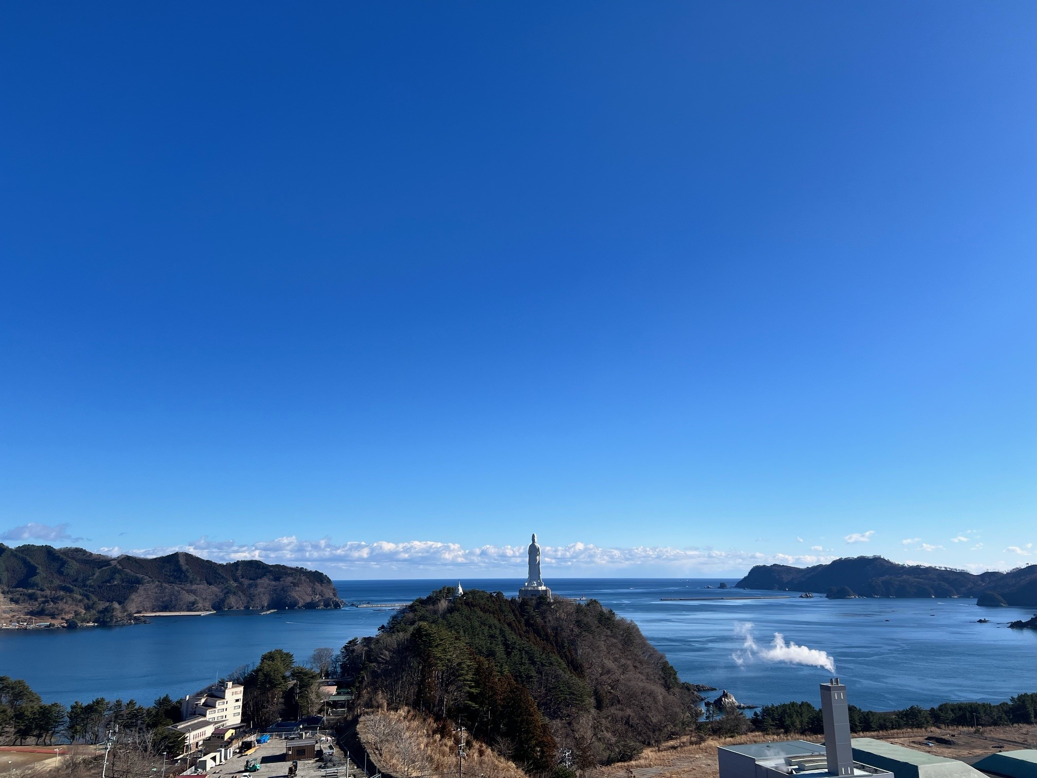 公共埠頭や湾口防波堤など、日本人による海図第一号の釜石港を一望できます。