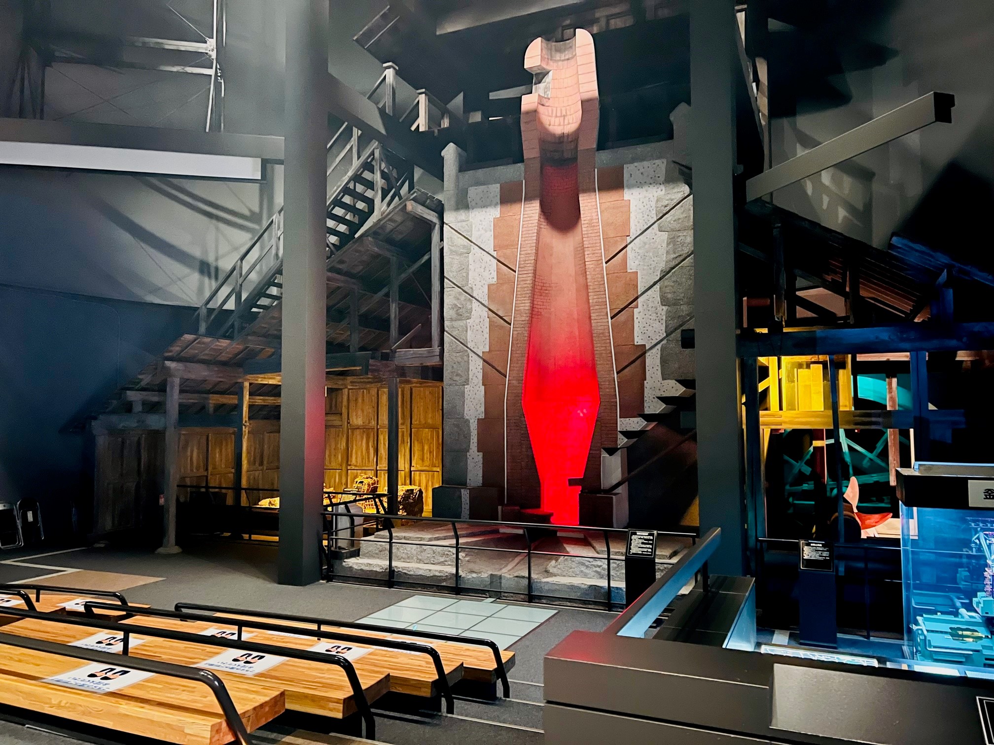 - 原寸大に復元された日本最古の高炉跡の模型を中心に、音と光と映像によって釜石の鉄の歴史を幻想的に展開します。