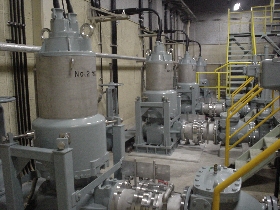 1階のエンジン駆動横軸ポンプ3台