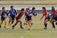 前半10分、FL氏家のトライで幸先のよいスタート。しかし、明大史上最強といわれるFWに緊迫した状態が続く。15-7で釜石リードの後半9分にトライ、21分にPGと1点差に詰め寄られ選手は狼狽、大漁旗を打ち振っていた釜石応援席も静まり返った。そして29分、明大左オープン攻撃で、SO若狭からブラインドWTB高橋へのサインプレーのパスを、SO松尾が一瞬のスキをつきインターセプト。40m独走で中央にトライ。これを機に流れは完全に釜石に。終わってみれば30-14でV4達成。