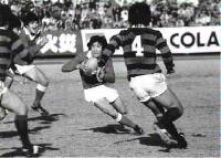 林、大八木らの巨漢をそろえ大学選手権に初優勝した同志社大が、王者・釜石に挑んだ。同大SO森岡が前半10分DGで先取点。20分すぎまでFWも押されていたが、地力に優る釜石は39分、SO松尾、CTB森のサインプレーが決まり、WTB永岡から最後はFB谷藤がトライ。4-3と逆転で前半終了。後半にはいると釜石ペース。キャリアの差が勝負を分け、釜石は史上初のV3を達成。