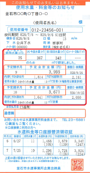 計算は、この検針票とは別途に、井戸水分の下水道使用料納付書・口座振替により納めていただくことになります。その納付金額は一年を4期に分けて、各3か月分の請求になります。