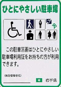 岩手県では、公共施設や商業施設などにある車いす用の駐車場の適正利用を図るため、対象となる方に「ひとにやさしい駐車場利用証」を発行しています。