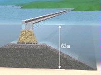 全長1,960m、水深63mという世界最大水深に建設された世界最大級の湾口防波堤です。