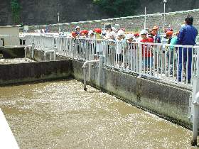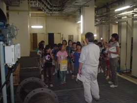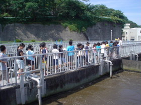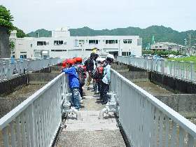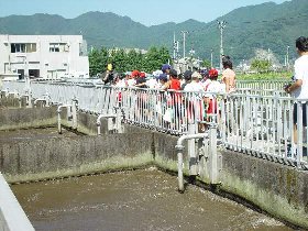 |  |  |  | 外に出てからは、実際に市内から流れてくる汚物を含んだ下水が、沈澱や微生物の働きできれいになってゆくようすを見ていただきました。 平成19年度の見学者数は214名となりました。学習での見学はもちろん、一般の方も随時見学を受け付けていますので、ご連絡をお願いします。 |  | |