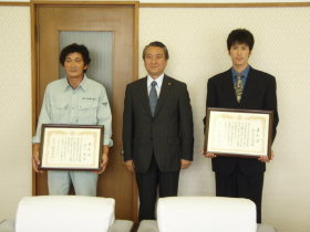 | 23 | H23.10.26 釜石市が「環境のみち下水道賞」を受賞しました。 国土交通大臣賞 平成23年度(第4回)循環のみち下水道賞、特別部門に選ばれました。内容は「東日本大震災で被災した水管橋の迅速な仮復旧の実現」で、この10月21日に国土交通省において同大臣から釜石市長が賞状を受け取って来ました。官民協力の下で迅速な応急復旧を実現できたことが評価されたものです。詳しくは添付の「循環のみち下水道賞H23」と「特別部門賞状」をご覧ください。 特別部門賞状(181 KB JPGファイル) 環境のみち下水道賞(1,753 KB pdfファイル) |