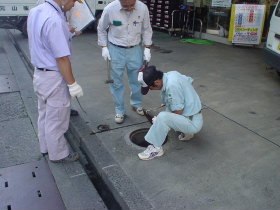 | 15 | H20.09.10 釜石市でも「下水道の日」に関連した行事を行いました 毎年9月10日は下水道の日です。日本下水道協会や各自治体ではこの日を含む1週間を中心として下水道の普及PRを目指した行事を実施しています。釜石市でも広報誌への掲載・広報車による呼びかけ・ポスター掲示・縦横断幕の設置等の他、次のような活動を行いました。 1.下水道功労者表彰~下水道の普及に直接関わる建設業務に長年勤めて来られた2名の方を表彰しました 2.環境美化活動~釜石市水道工事業協同組合が主体となって公共施設などにプランタを配置しました  3.公設ますの点検~今年度は大渡町から只越町の一部について、市職員と釜石市水道工事業協同組合 の協同で各戸の桝のふたを開けて異常が無いか点検をしました  4.福祉バザーの開催~こちらも釜石市水道工事業協同組合が中心となって青葉通りで行い、 益金96,000円を釜石市障害者福祉センターに寄付しました。  5.処理場見学会の実施~大平処理場の見学に2人の方に来ていただきました  |