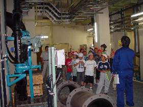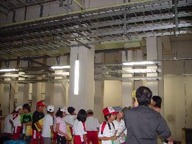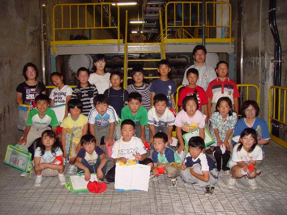 次に双葉小学校4年2組の皆さんです こちらは最初に地下室と外の設備から見学しました。 地下室と管廊  管廊(全長100mの地下通路)の中で記念撮影