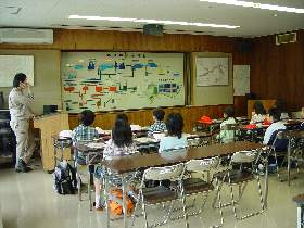 | 9 | H20.06.28 白浜小学校の皆さんが見学に来てくれました 釜石市立白浜小学校 3年生と4年生のみなさんです。 会議室で説明ビデオをみて、 水質試験室では水をきれいにする微生物を 下水道の役割の説明を受け、 顕微鏡で観察しました。  管廊は時間の関係で見られませんでしたが 水の中の沈みやすい汚れを取る最初沈澱池と、微生物が汚れを食べてくれる曝気槽を見ました。  最終沈澱池では、微生物も沈んできれいな上澄みになった処理水を確認できました  いっしょうけんめい説明を聞いてもらった白浜小学校3年生と4年生の皆さんです。これからも下水道の大切さや、水を汚さないようにする生活について考えていってもらえると嬉しく思います。
