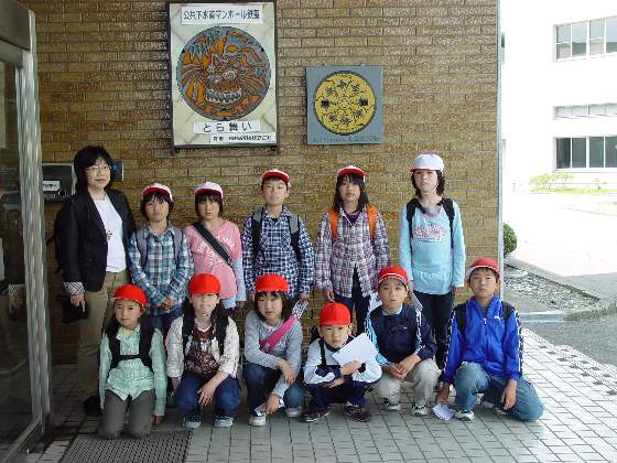 7 | H20.06.20 有住小学校の皆さんが見学に来てくれました 住田町立 有住(ありす)小学校4年生の皆さん21人と先生3人のあわせて24人が大平下水処理センターの場内を見学しました。 入口前であいさつのあと、2階で説明ビデオを見ました。 真剣に説明を聞いてくれました  中央管理室では監視装置も見学。 水質試験室では水をきれいにする微生物を顕微鏡で確認  地下室ではいろんな機械と、長い管廊を歩いて・・・ 地上に出て流入下水の汚れと、最初沈澱池を見て  エアレーションタンクで活性汚泥と攪拌されると、最終沈澱池ではきれいな水に生まれ変わるのを確認しました  途中の管廊での記念撮影です。 これからも水をはじめとした環境をいっしょに守って行きましょう