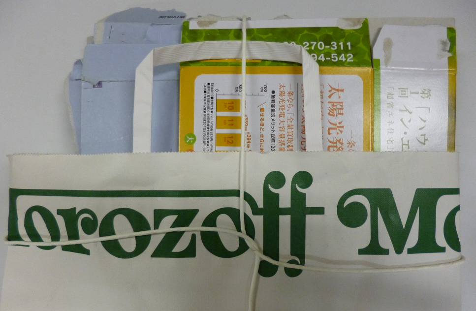 - 紙箱、包装紙や紙袋(※プラの取っ手の場合は、取っ手を取る)