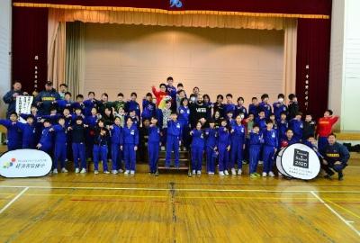 釜石小学校6年生19名との交流で、釜石市の紹介、郷土芸能虎舞の披露などの異文化交流や釜石シーウェイブスRFC協力のもとラグビー交流を行いました。