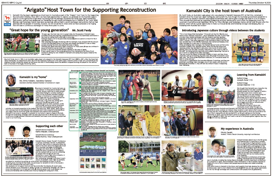 オーストラリアのラグビー関係者を釜石に招き、ラグビーを通じて市民や関係者との交流を予定していましたが、新型コロナウイルス感染拡大の影響による渡航制限により、直接の交流ができなくなりました。そのため、オーストラリアの応援や今までのホストタウン活動の周知等を行っています。
