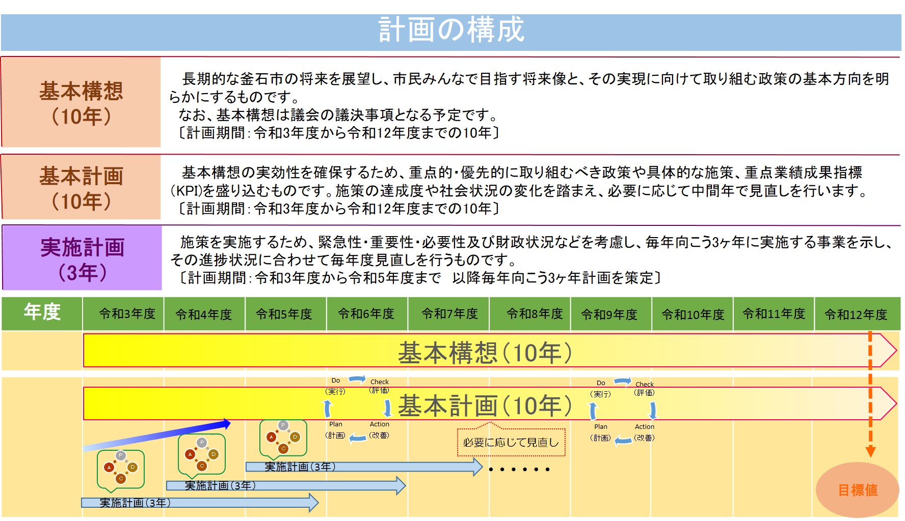 総合計画は、将来、釜石市をどのような「まち」にしていくのか、そのためにだれが、どんなことをしていくのかを、総合的・体系的にまとめたものです。市の福祉や都市計画、環境といったすべての計画の基本となるもので、いわば市の「まちづくりを進めていくための道しるべ」だといえます。