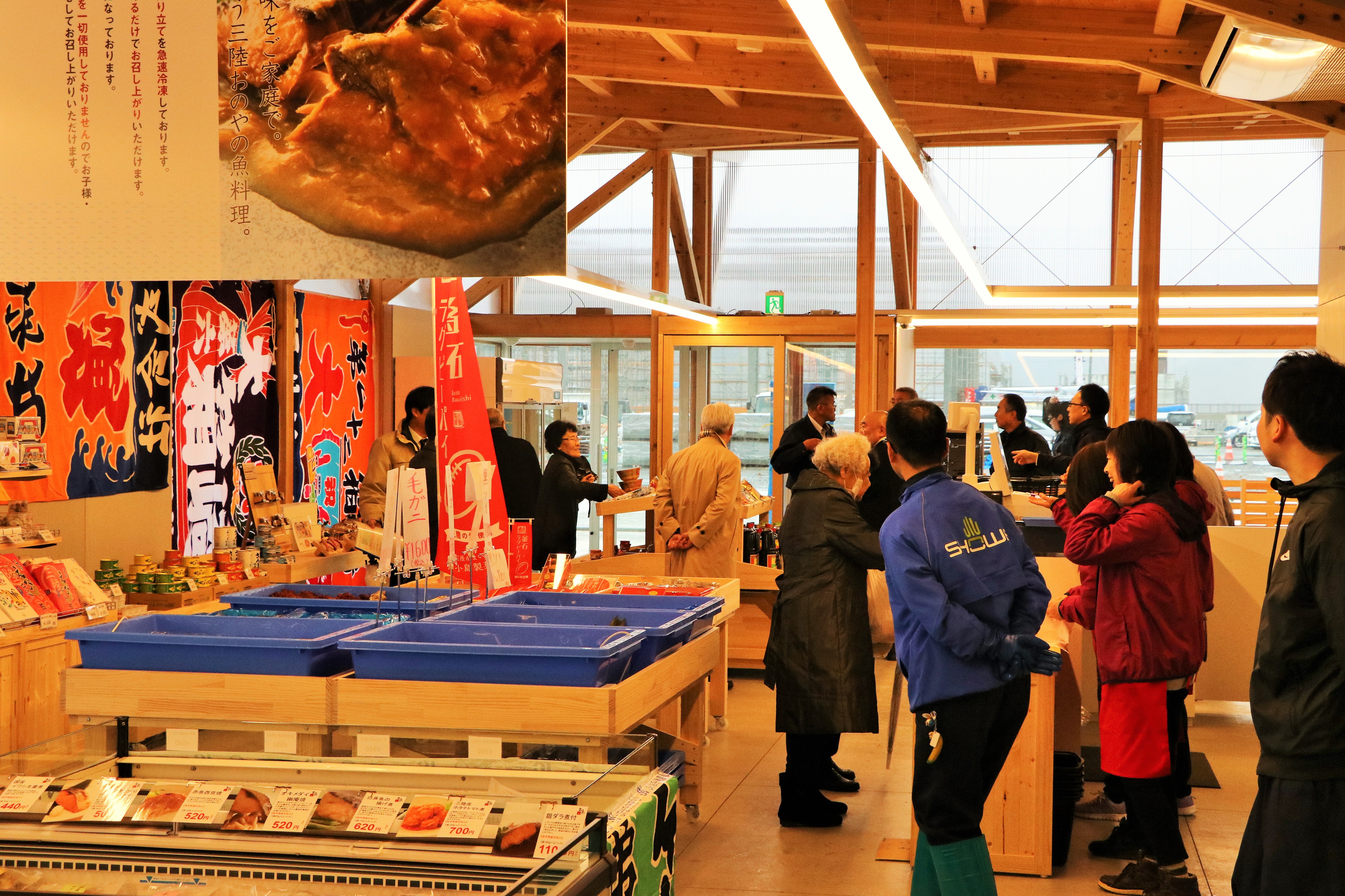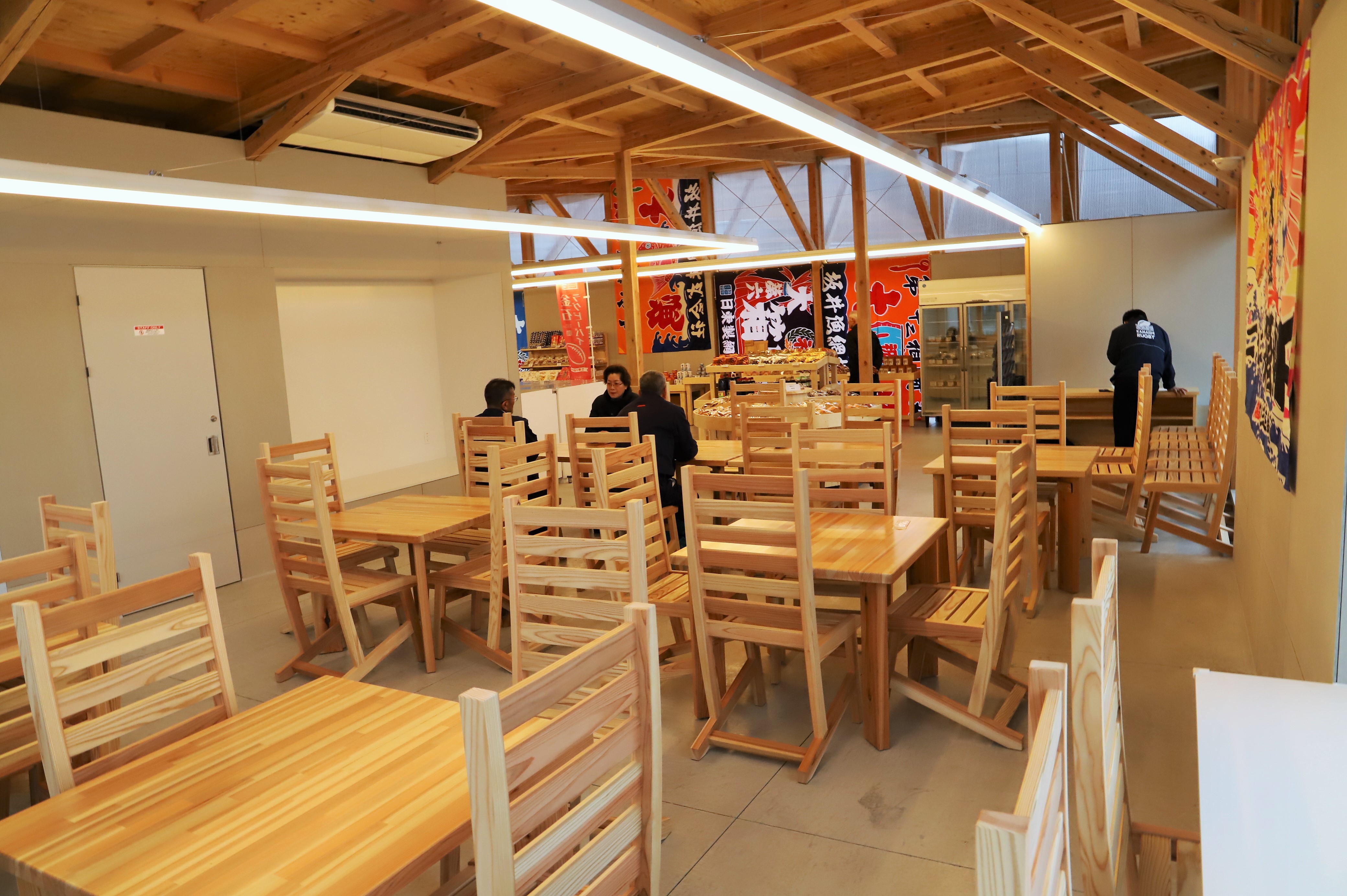 観光情報やイベント情報を発信する情報案内スペース、釜石ならではの特産品や土産物が購入できる物販スペース、採れたての海産物をふんだんに使用した海鮮丼や蕎麦、釜石ラーメンなどが味わえる交流・飲食スペースがあります。