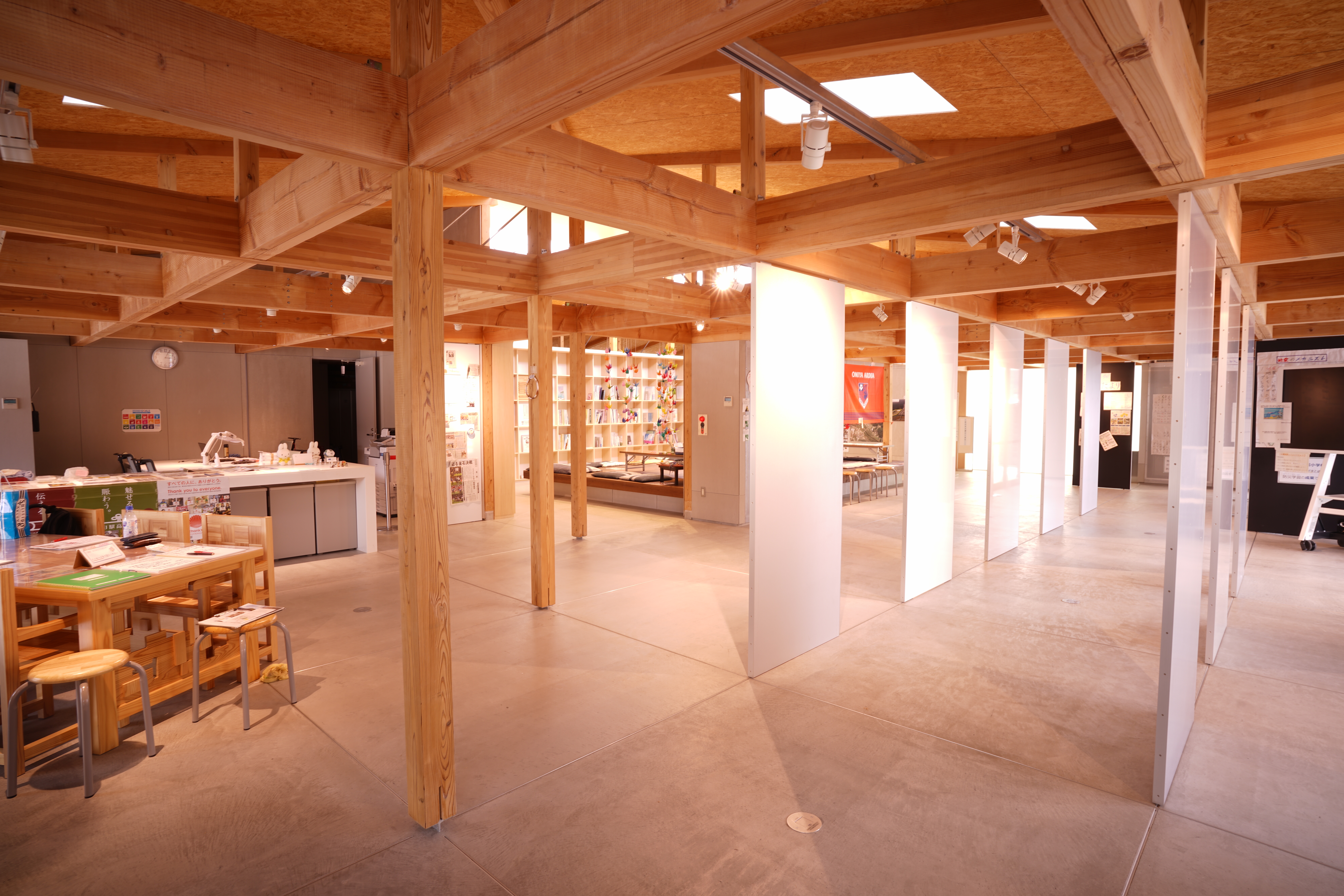 震災による被害状況や釜石の子どもたちが取り組んだ防災学習について紹介する展示室、震災に関する資料を収蔵・閲覧できる資料閲覧室、企画展や防災学習に関するワークショップなどの幅広い用途に活用できる防災学習室の3つのゾーンで構成しています。