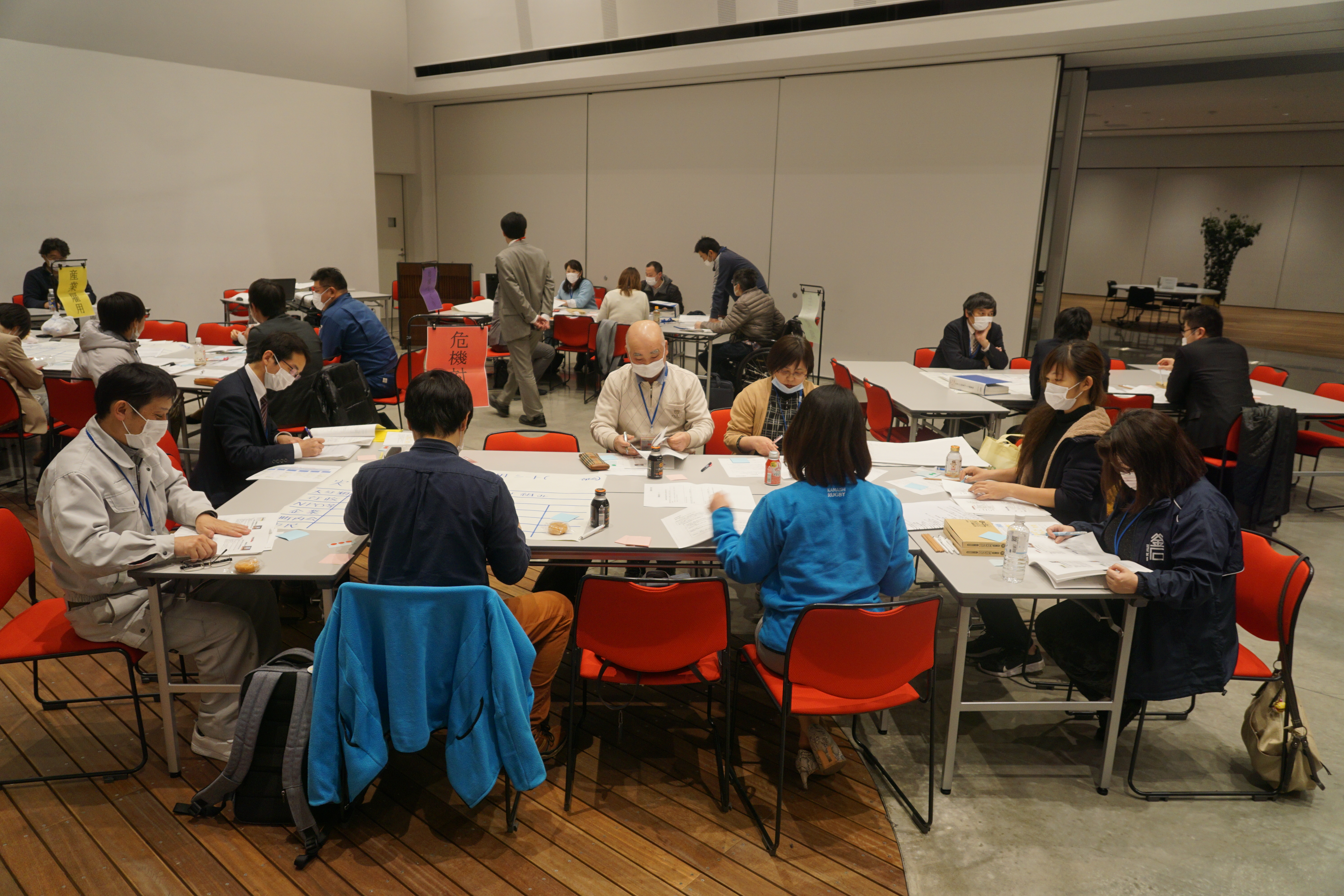 第2回に引き続き部会毎に釜石市の現状と課題、トライすることについて検討を行いました。 |