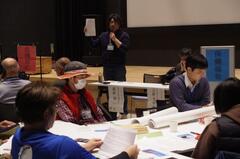 部会ごとに「基本目標」と「基本目標の実現に向けた戦略」の微修正を行った後、班替えを行い、これまで話し合われたそれぞれの部会の視点を持ち寄って「目指すべき将来像」を検討しました。