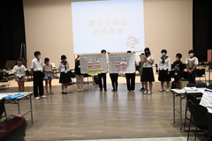釜石市、大館市の児童・生徒がかまいし絆会議、大館市子どもサミット、それぞれの活動紹介による交流を通して、「地域のために何ができるか」について検討を行いました。 |
