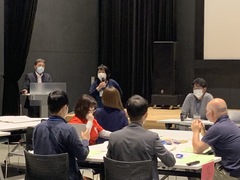 市が重点的に取り組んでいる施策の現状と課題について共有されました。 その後、KPT(ケプト)という手法を用いて、グループごとに「現状と課題、トライすること」について話し合いを行いました。