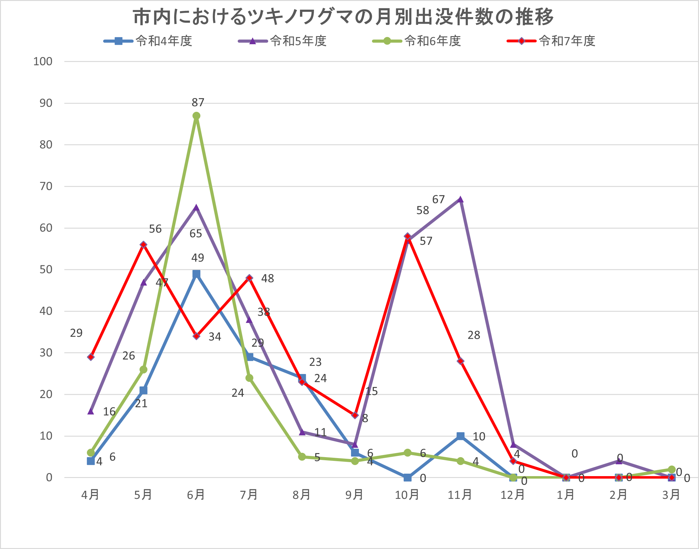 市内におけるツキノワグマの月別出没件数の推移(令和8年3月末現在)[PDF:8.88KB]