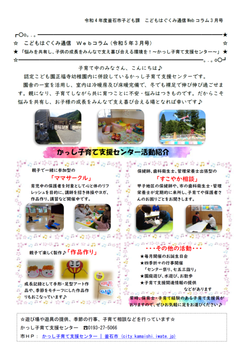 釜石市では、子育てに関連する情報を「こどもはぐくみ通信」と題してお届けしています。