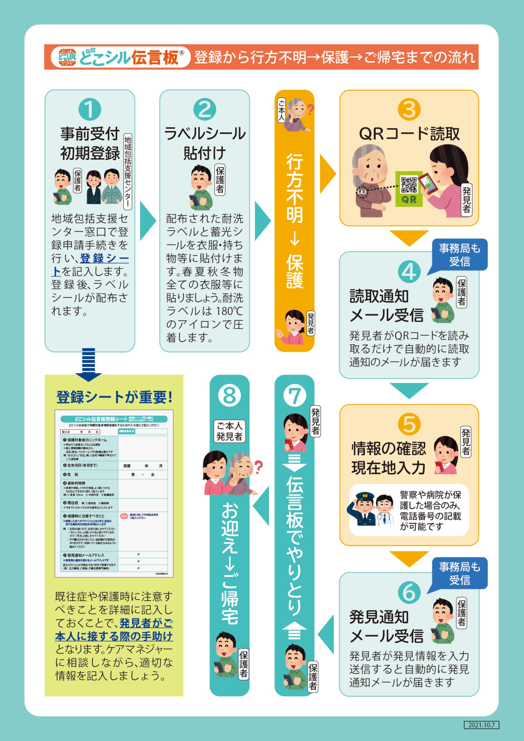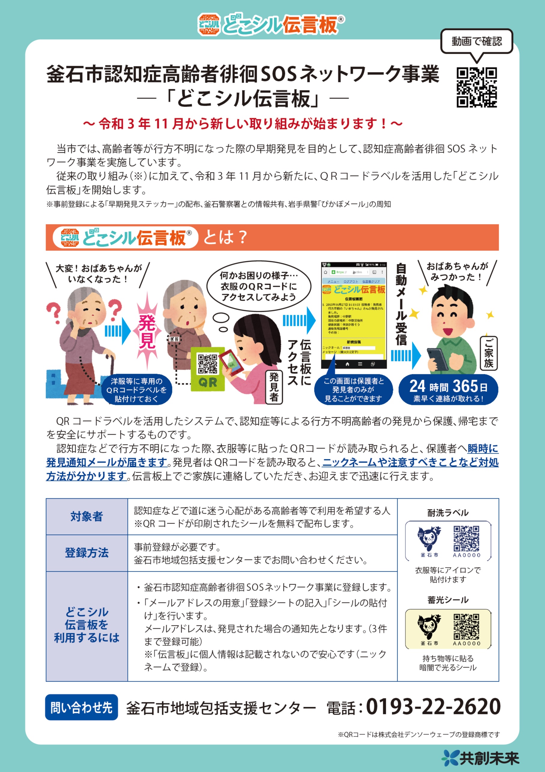 市では、認知症高齢者の徘徊事故発生時の早期発見・早期保護を図り、安全をサポートする取り組みとして「認知症高齢者徘徊SOSネットワーク事業」(←クリックすると同事業の紹介ページへ)を実施していますが、従来の取り組みに加え、11月から新たに「どこシル伝言板®」の運用を開始します。