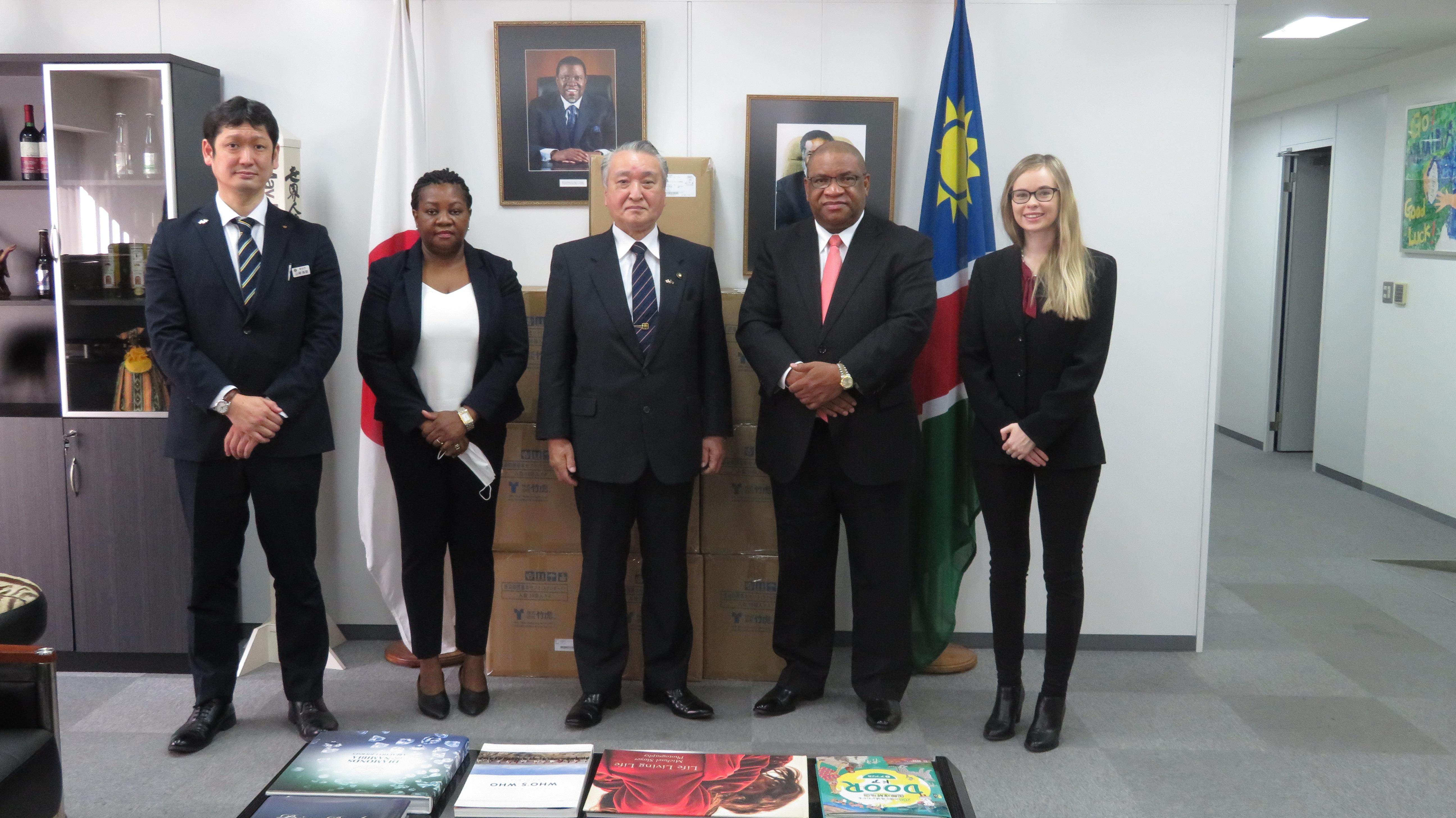市では、駐日ナミビア共和国大使館より依頼を受け、同国内での新型コロナウイルス感染拡大防止のため、市職員有志より募金を募り医療従事者等が着用する防護服を購入し、同大使館に寄贈いたしました。