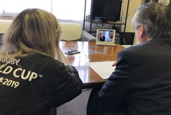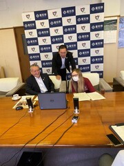 【ディーニュ・レ・バン市とのWEB会議の様子です。観光農園の整備について説明しました。】