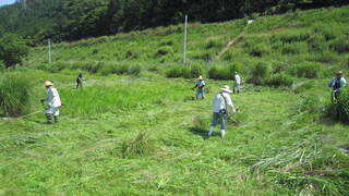 令和3年7月、長年、遊休地だった農地の復活のため、釜石市農業委員会の皆さんと草刈り作業を行いました。大人の男性の腰まで草丈のあった雑草も綺麗に刈り取られ、周辺のゴミ収集も行われました。