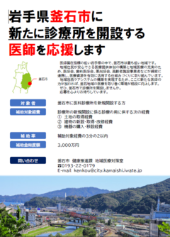 釜石市診療所等開設資金支援補助金交付要綱[PDF:149KB]