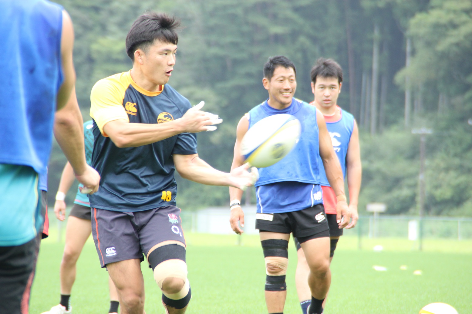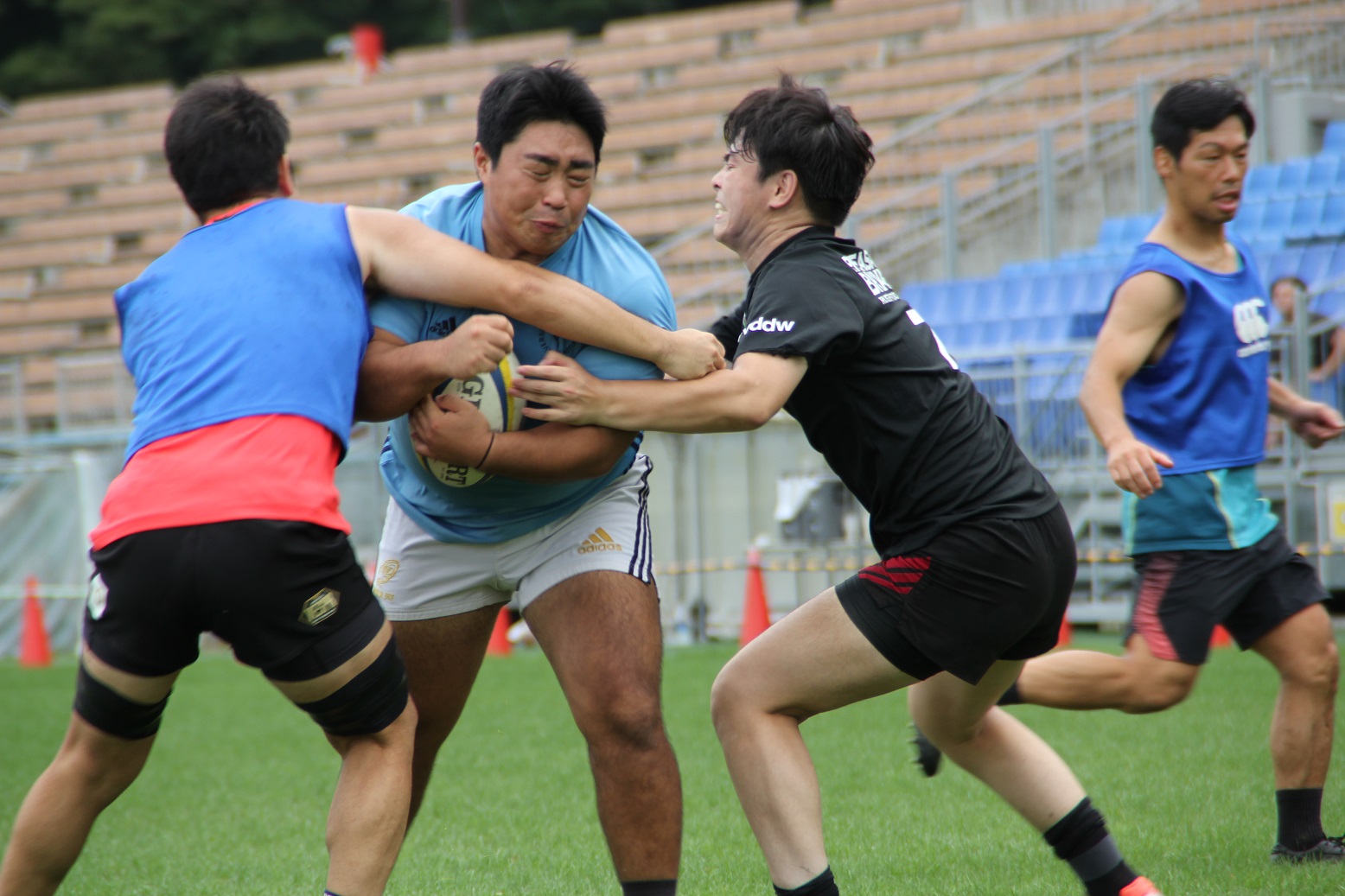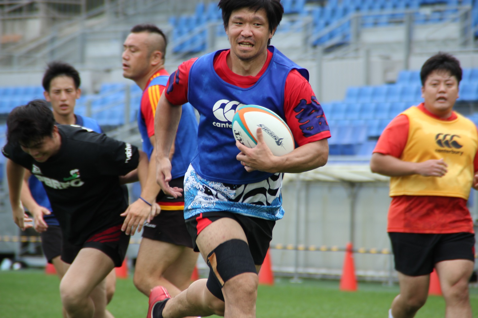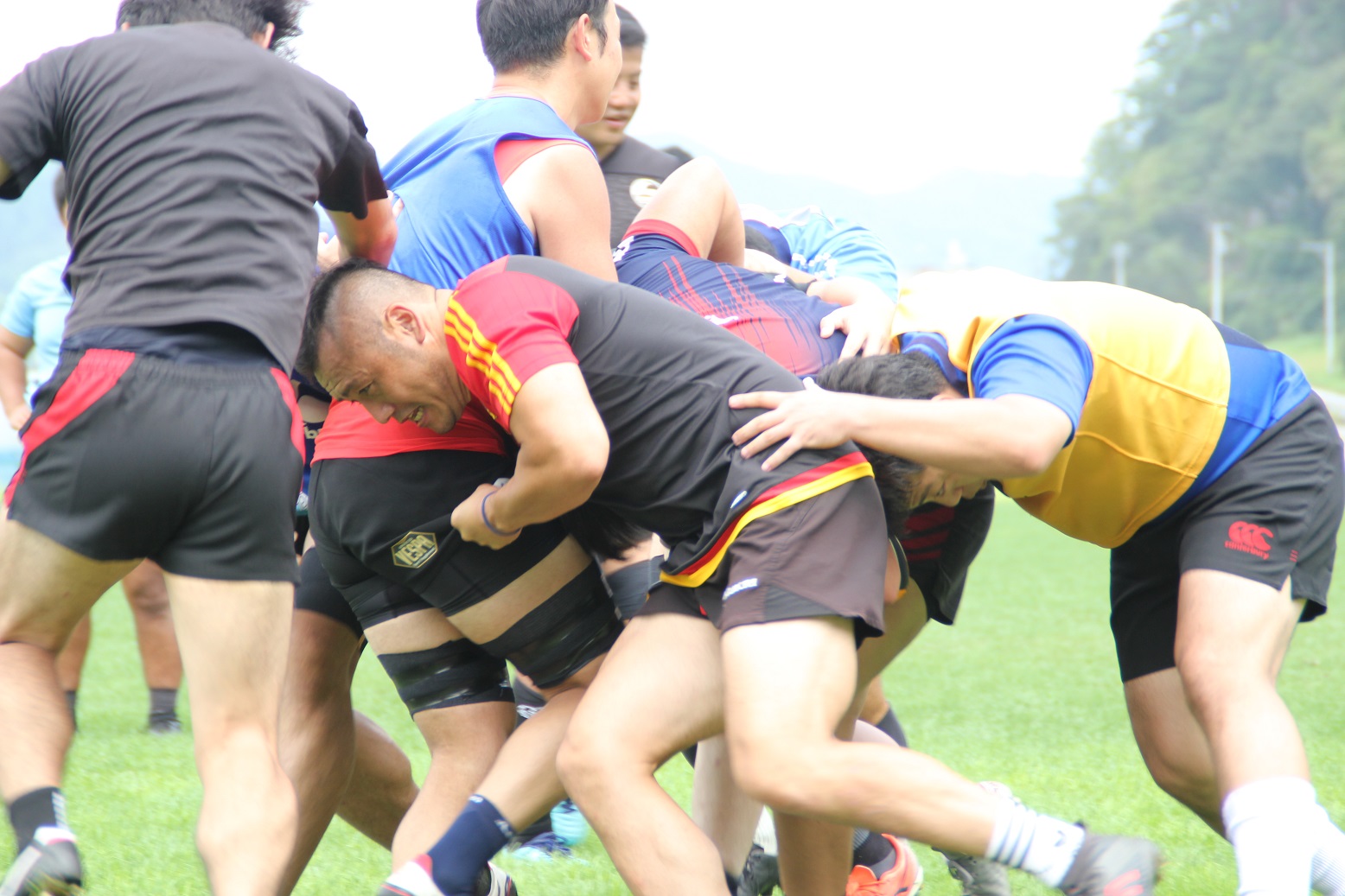 国内での最後の練習会ということもあり、ディフェンスやセットプレーの確認等、特にチームでの連携について入念に確認をしていました。いわて釜石ラグビーフットボールクラブは、他の出場国のチームとは異なり、市内、県内、県外といった各地から集まった選手により構成されており、頻繁に集まって練習することができません。そのため、普段から練習で集まることができるチームと比べ、一回一回の練習の重みが違います。選手は一分一秒を惜しむかのように、真剣なまなざしでサインの確認を行っていました。