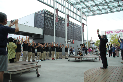 釜石市民ホールTETTOで市民の皆さまに温かく見送られた後、JR新花巻駅で県内の選手が合流して出発式が執り行われました。