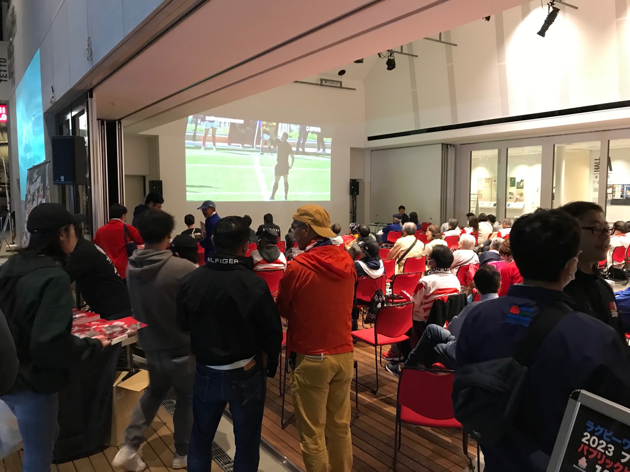 当日は、ホールからあふれんばかりの大勢のラグビーファンが集まり、選手たちのフランスでの活躍に熱いまなざしを送っていました。ご参加くださった皆様、誠にありがとうございました!