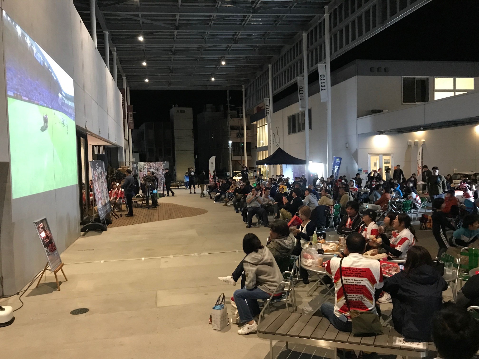 10月8日(日)に釜石市民ホールTETTOにて、ラグビーワールドカップ2023の日本対アルゼンチン戦のパブリックビューイングにあわせて、いわて釜石ラグビーフットボールクラブの試合を放映しました。