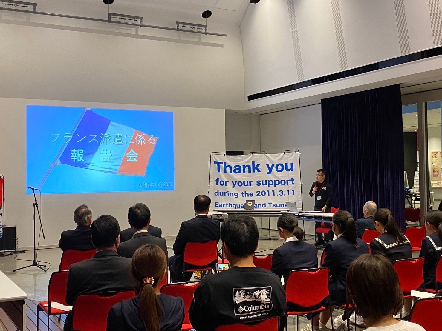 10月28日(土)釜石市民ホールにて、いわて釜石ラグビーフットボールクラブと派遣中学生のフランス派遣に係る報告会が開催されました。