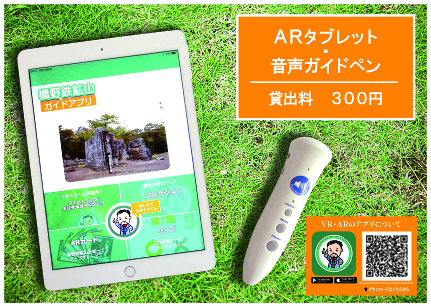 - 施設内では、ARタブレット及び音声ガイドペン(多言語対応)の貸し出しを行っております。見学のお供にいかがですか?