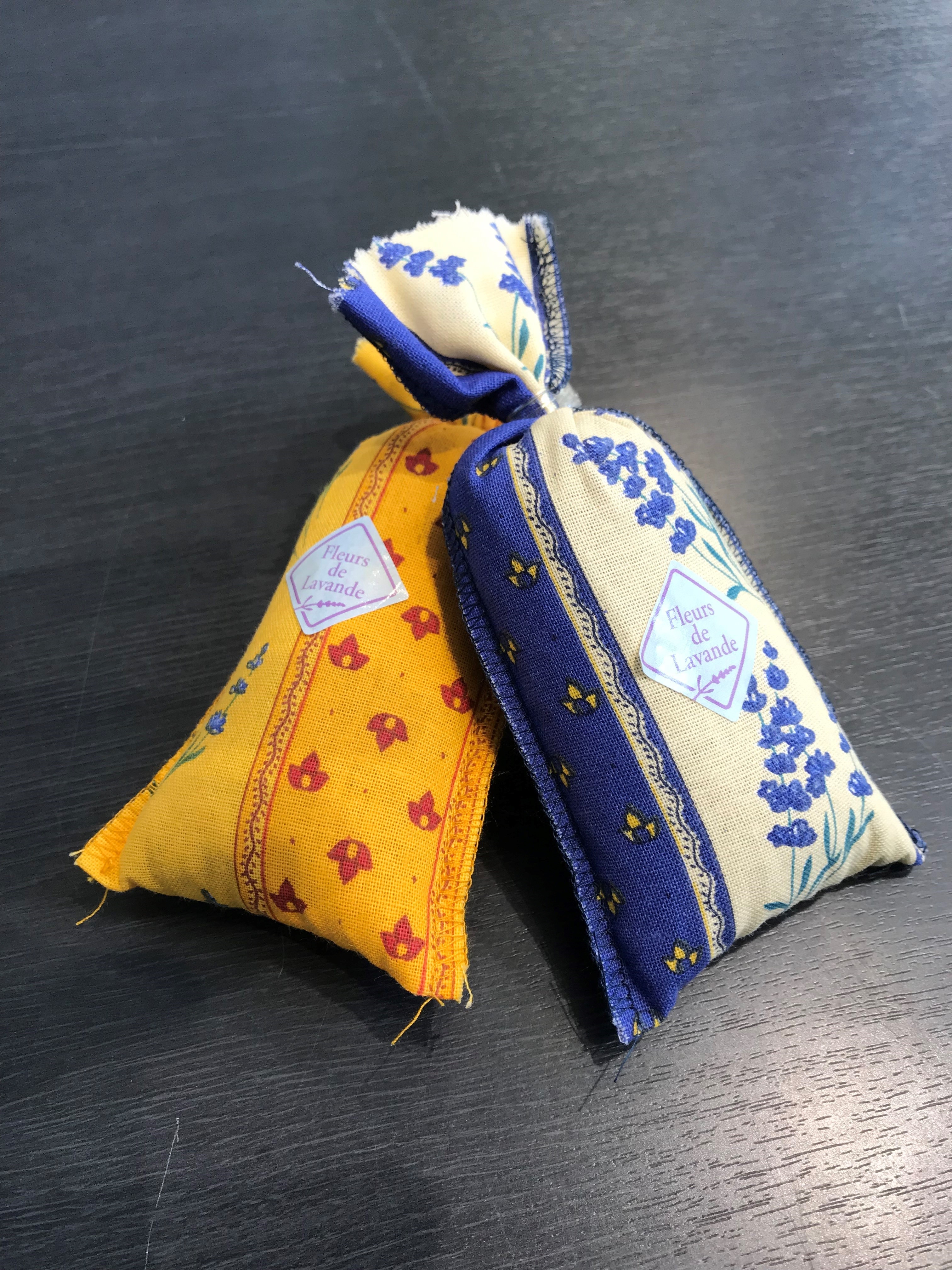 この香り袋は、フランス語で「サシェ」と呼ばれ、香料や乾燥させた花、ハーブを入れた小さな袋のことを指します。現地では、好みの乾燥させた花やハーブを入れて、好きな場所に置いたり鞄の中に入れるなど、さまざまな方法で香りを楽しむために使われています。