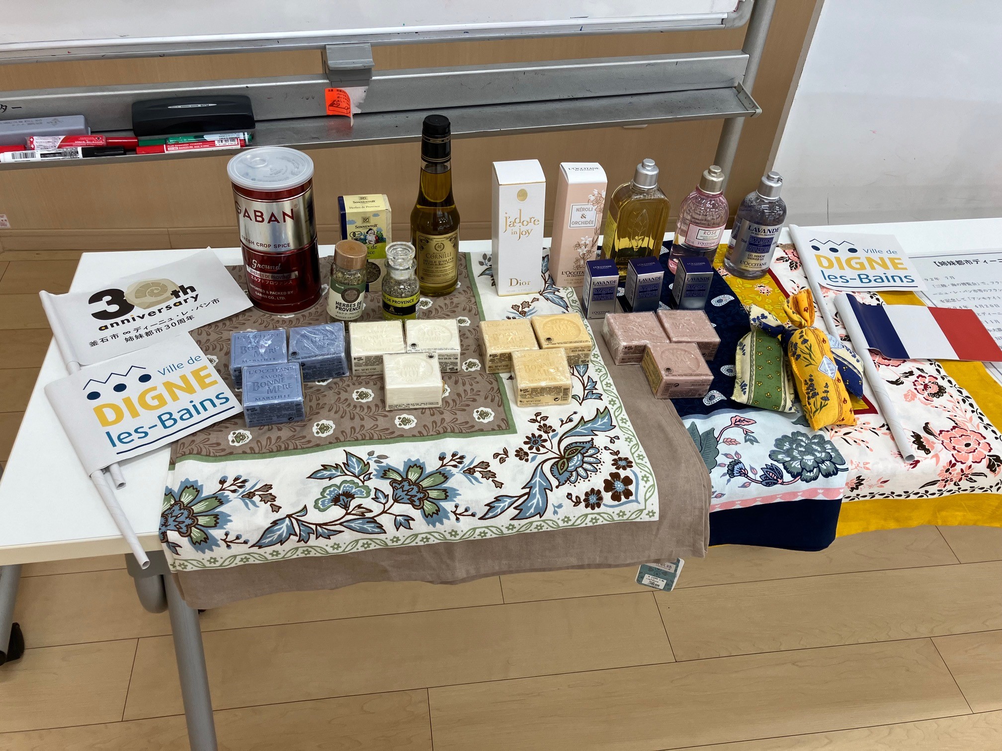 今回は。市内で手芸教室を開催されている里館恭子さん(ニコー商会、大町)を講師に迎え実施しました。また、ディーニュ・レ・バン市ではラベンダーの栽培が有名なことから、ドライラベンダーを使った香り袋を作りました。