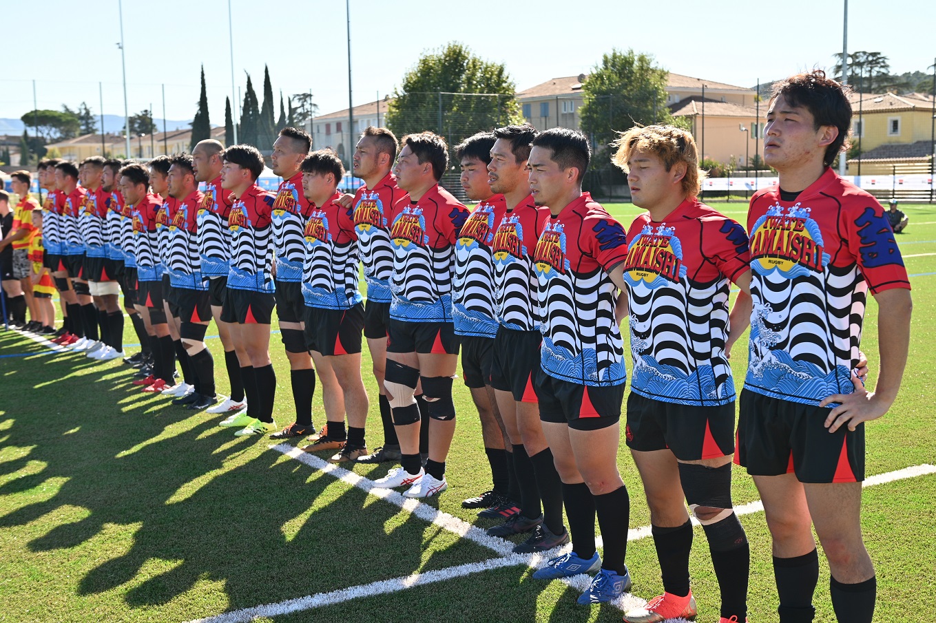 このデザインは釜石高校生有志により制作されたもので、両市を象徴する花「はまゆり」や「ラベンダー」、姉妹都市提携のきっかけとなった「アンモナイト」、昨年ラグビーチームの派遣が行われた「ラグビー」が盛り込まれています。