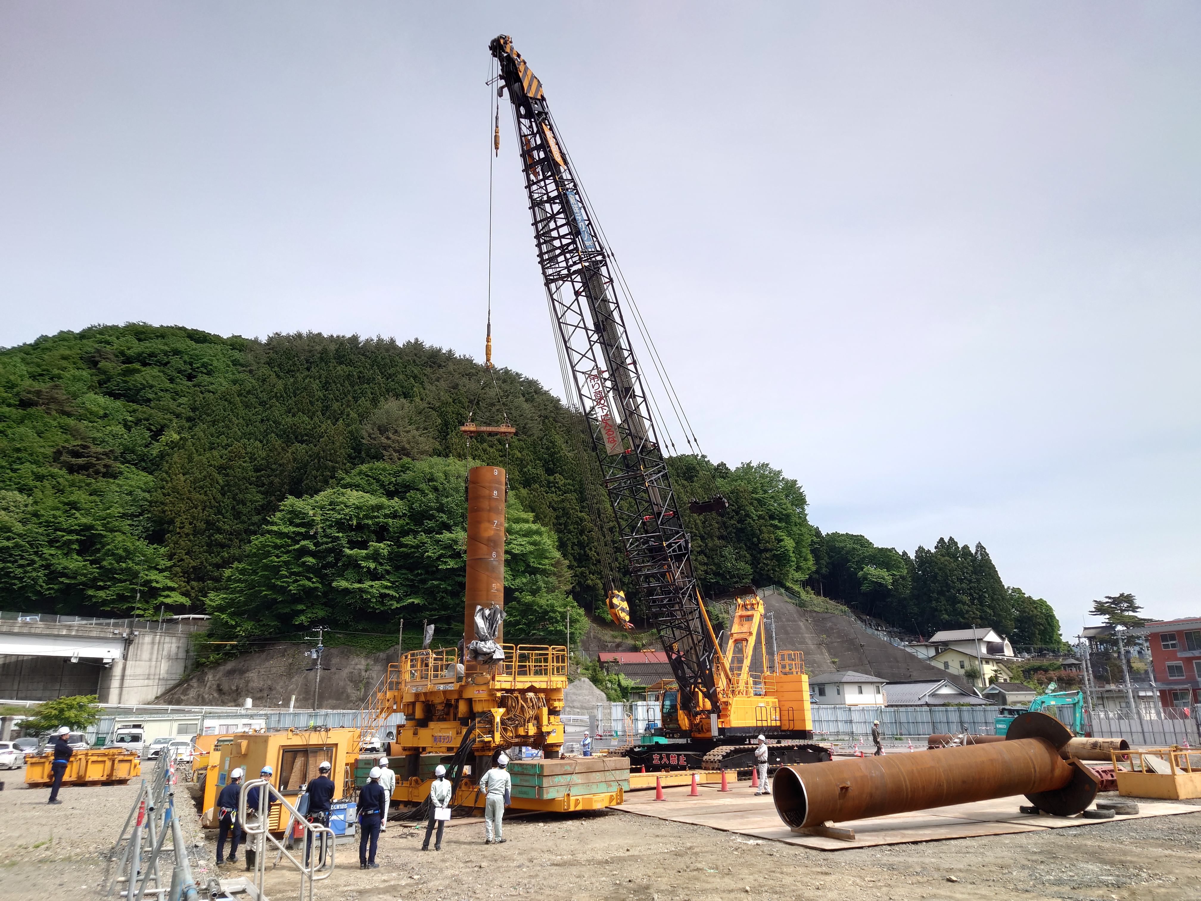 公開日 2024年05月15日 更新日 2024年12月23日 ← 先月の建設状況 (令和6年5月) 翌月の建設状況 → 令和6年5月 5月中旬に杭打ち工事が始まりました。 「杭打ち」は物件の地盤を補強するために行われるものであり、建築における重要な基礎工事の一つです。 定点撮影(仙寿院さま高台から撮影) 撮影日:令和6年5月15日 ※建設状況一覧はこちらから この記事に関するお問い合わせ 総務企画部 新市庁舎建設推進室住所:〒026-8686 岩手県釜石市只越町3丁目9番13号TEL:0193-27-8429FAX:0193-22-2686お知らせ:問い合わせメールはこちら