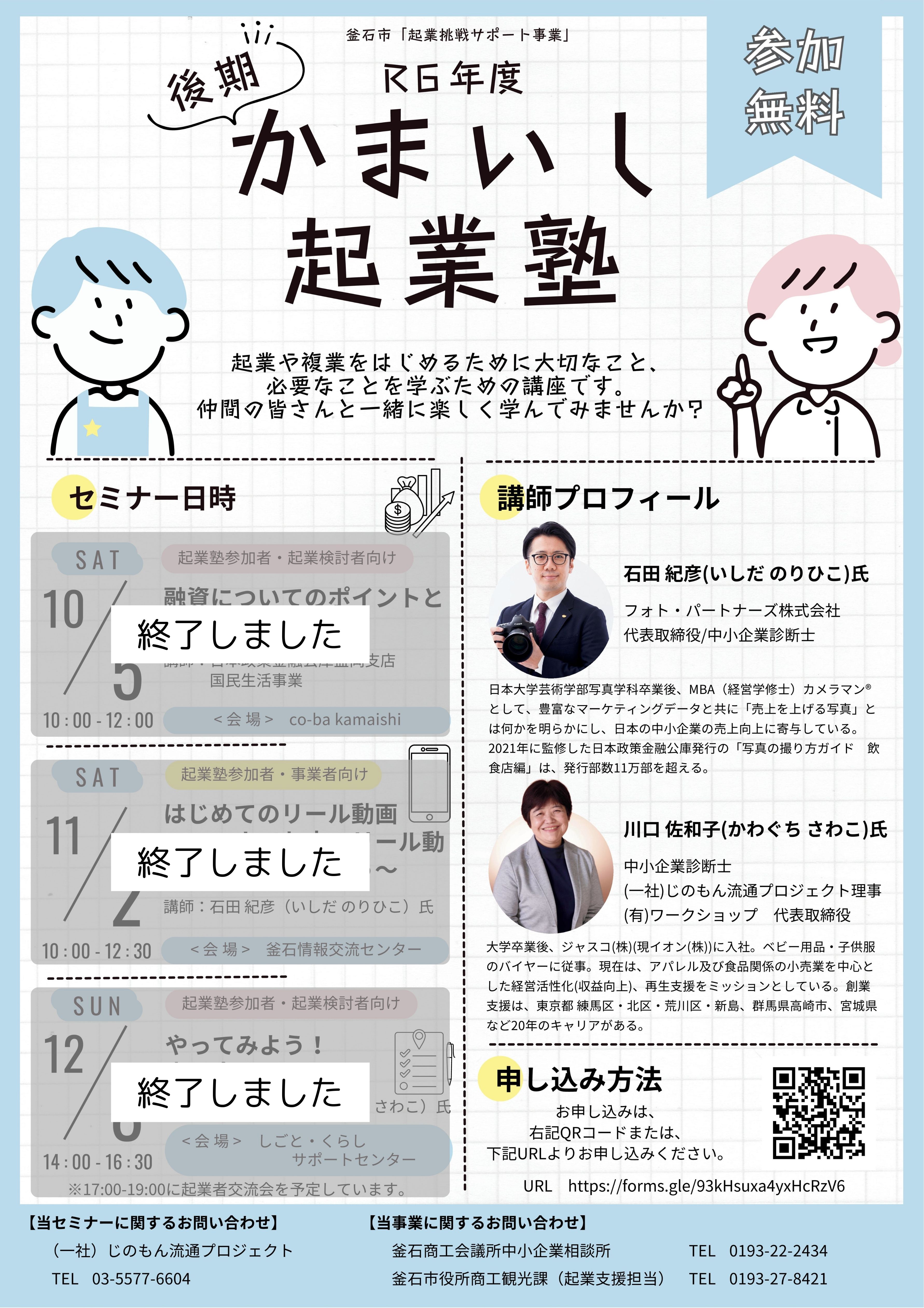 釜石市役所商工観光課(起業支援担当) TEL:0193-27-8421