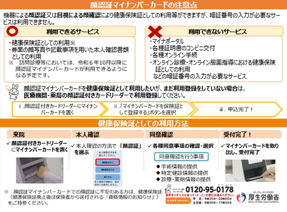 医療機関等において外見上区別できるようにマイナンバーカードの追記欄に「顔認証」と記載します。