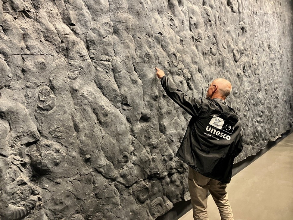 「アンモナイトの壁」のレプリカの視察