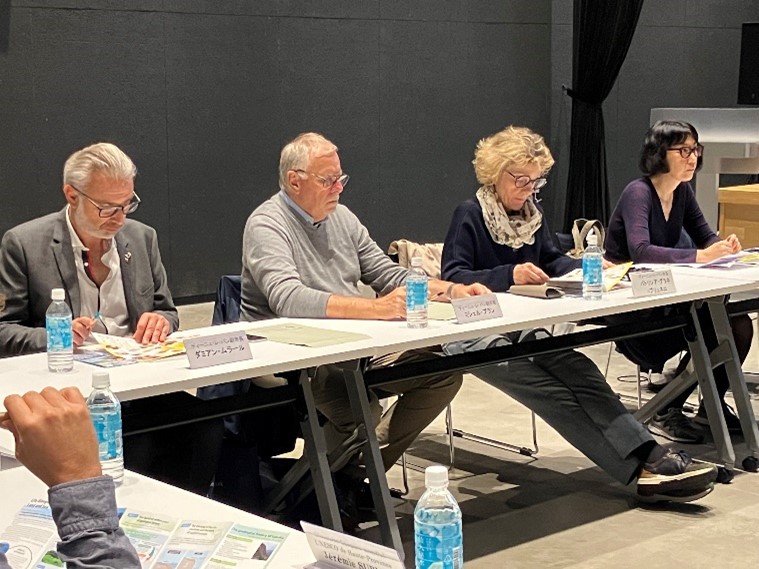 (写真左 外務省 山上修吾外務事務官、中央 在日フランス大使館 レティシア・ビルゴレ政務参事官、右 岩手県 工藤 直樹沿岸広域振興局長)